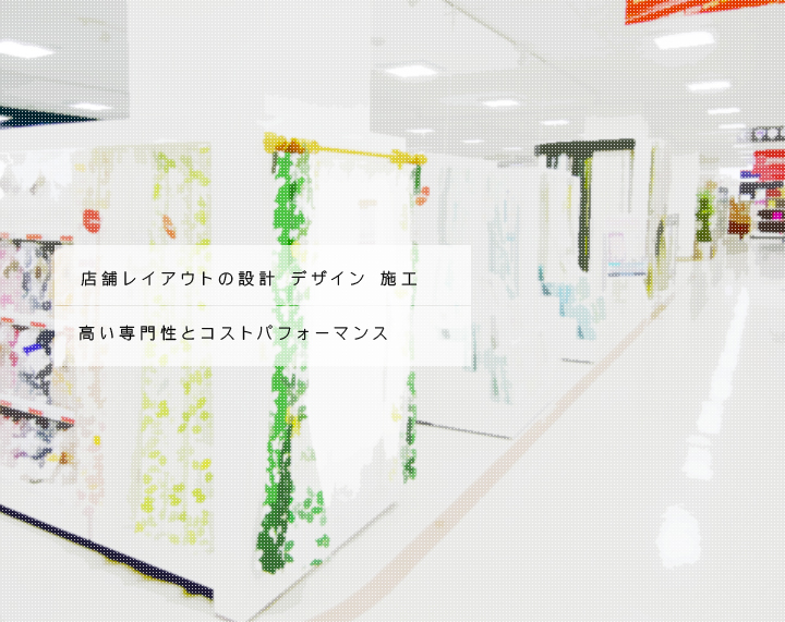 マスナベは、店舗内外装一筋の設計施工会社です。ホームセンター、駅ビル、百貨店の店舗レイアウトや、衣料品・食品・日用品の什器をはじめ、小型店舗から大型店舗までさまざまな規模の売場作りを手がけています。